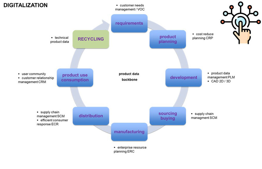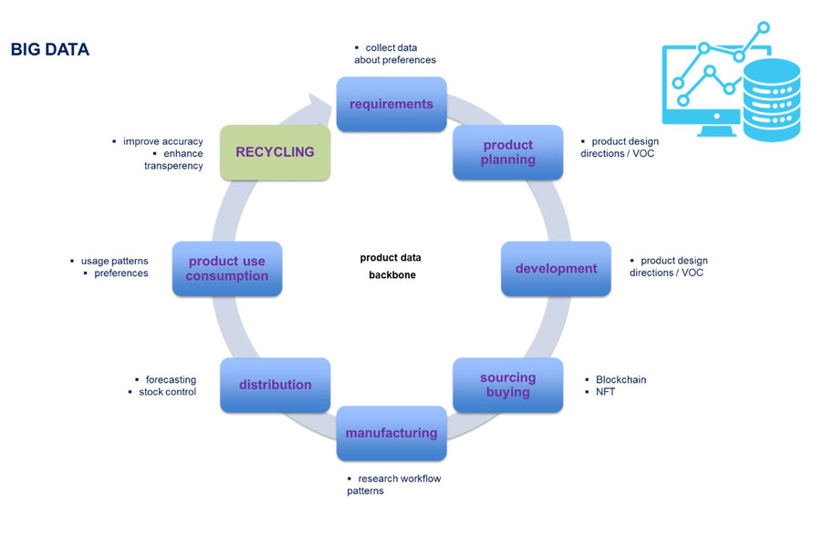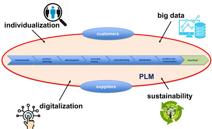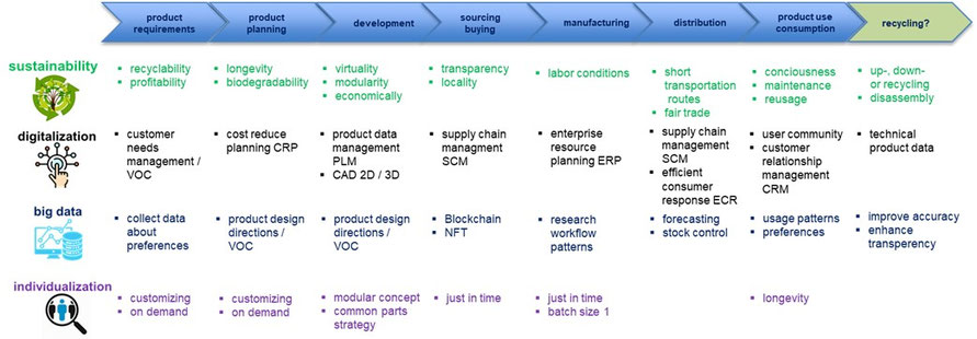 Digitalization also challenges the management of the clothing product lifecycle. Here the major challenge is the integration of product information along the products life cycle.