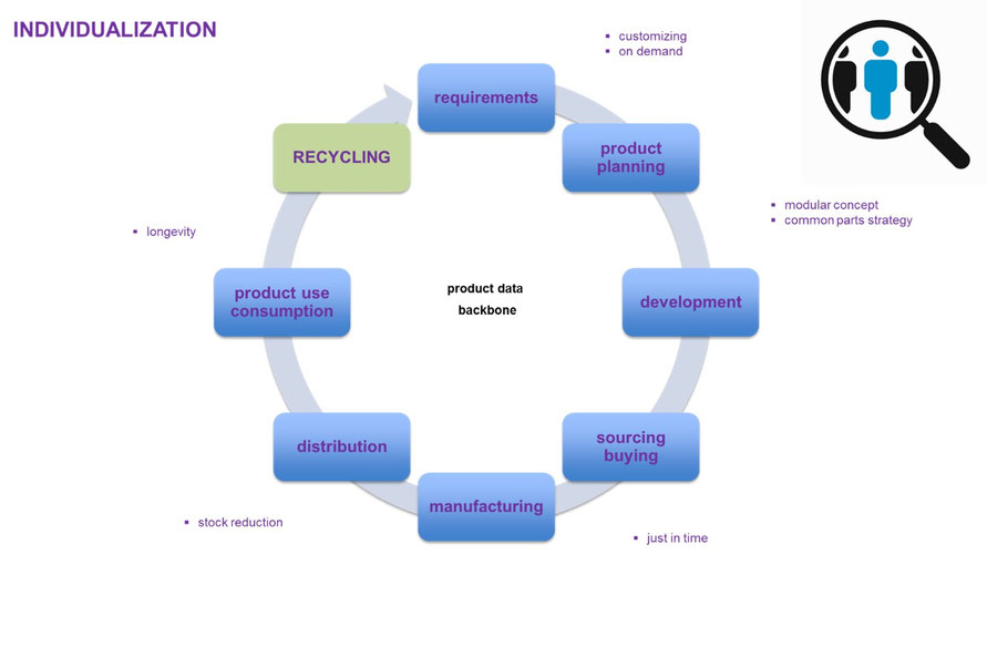 To be able to realize customized products, preferably on demand, we will have to establish modular concepts which work with common parts strategies within the product planning and development processes.